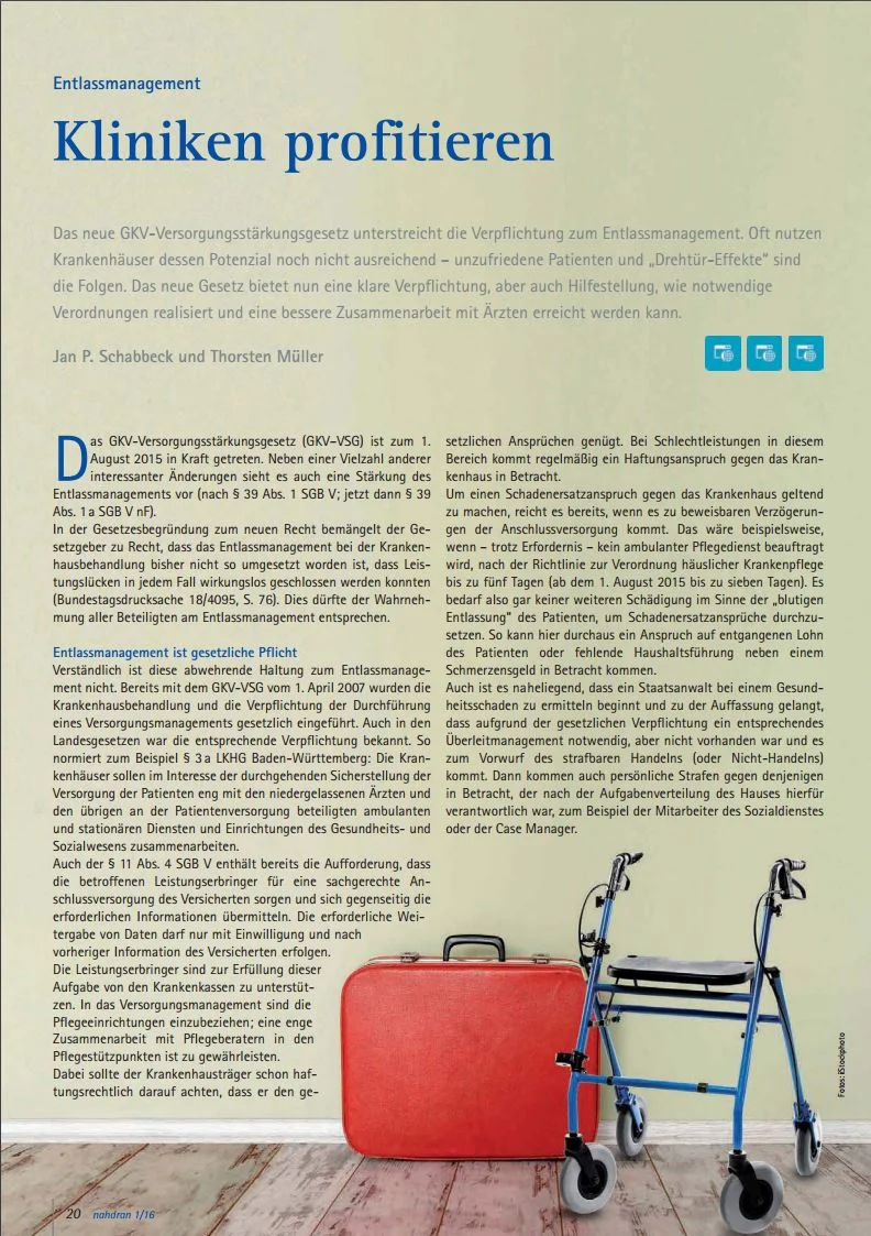 Der Artikel "Kliniken profitieren" zum Thema Entlassmanagement
