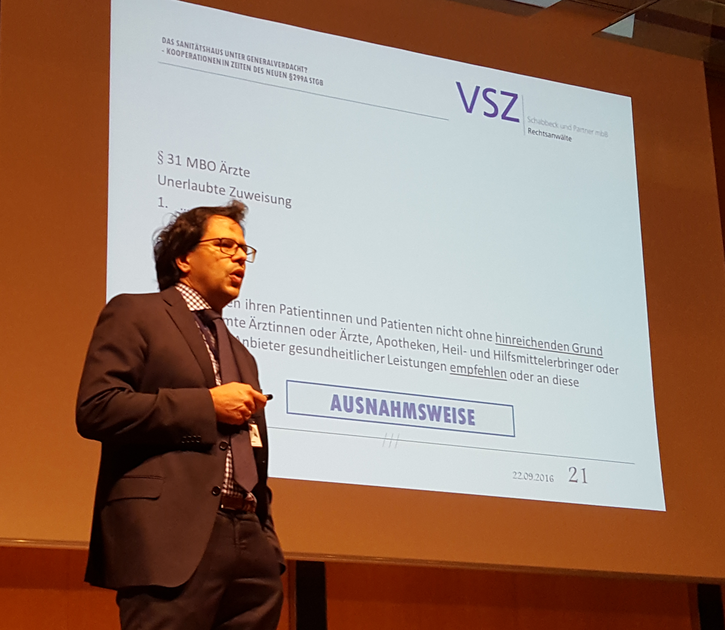 Rechtsanwalt Schabbeck zu § 299 a StGB auf dem 40. Jahreskongress der Deutschen Gesellschaft für Lymphologie e. V. in Hof.