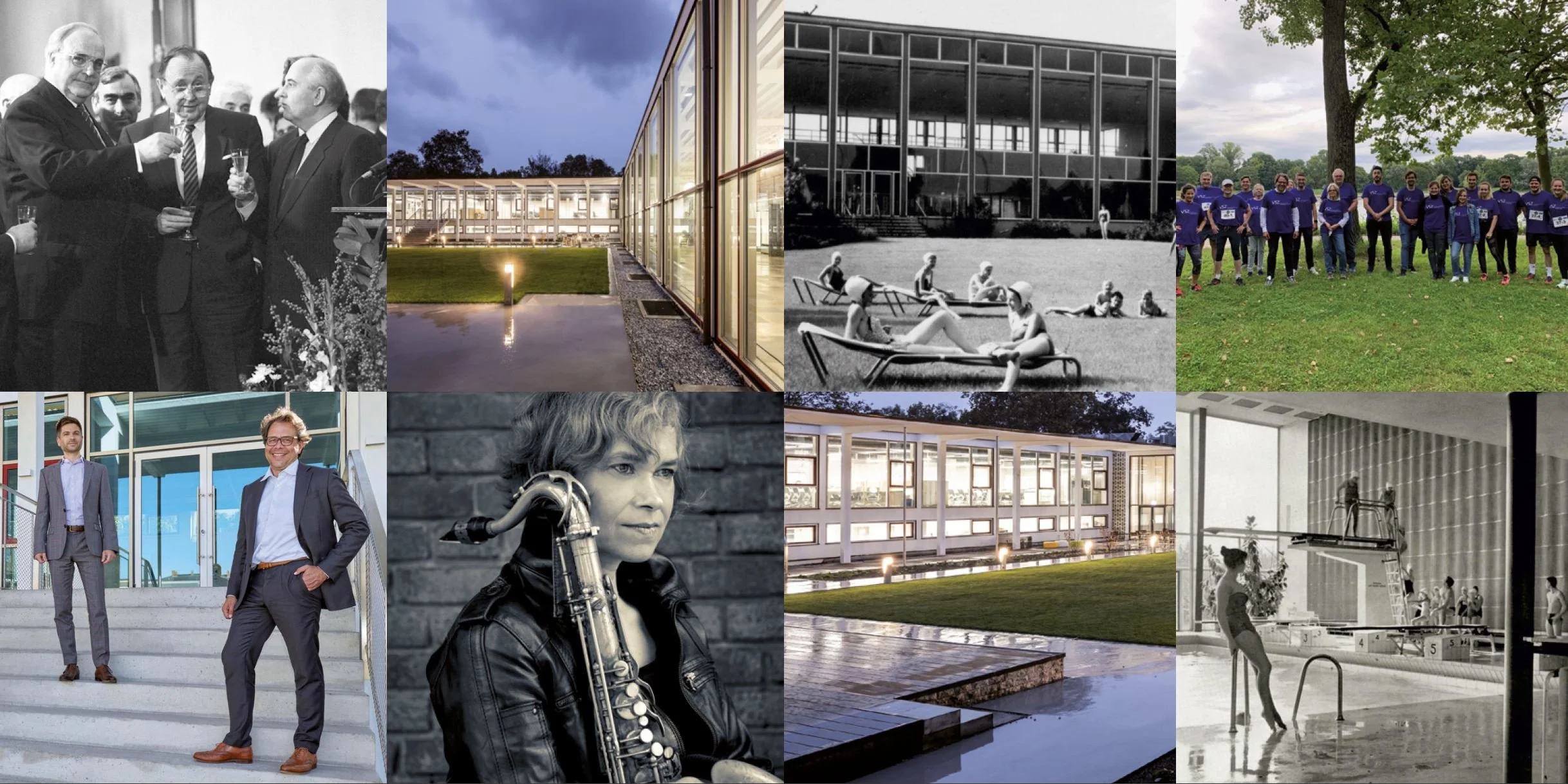 Neben dem Biergarten, den die VSZ Rechtsanwälte im Innenhof haben, war es vor allem das ehemalige Tauchbecken mit seinen denkmalgeschützten Mosaiken, das die Blicke der Gäste auf sich zog. Auf Panzerglasplatten stehend – unter sich die original Tauchbecken, in denen Michail Gorbatschow mit seinem Pfälzer Gastgeber Helmut Kohl saß – bewundert man die beeindruckenden Mosaiken. Zu den Geschäftszeiten der Kanzlei wird hier an mobilen Arbeitsplätzen gearbeitet.